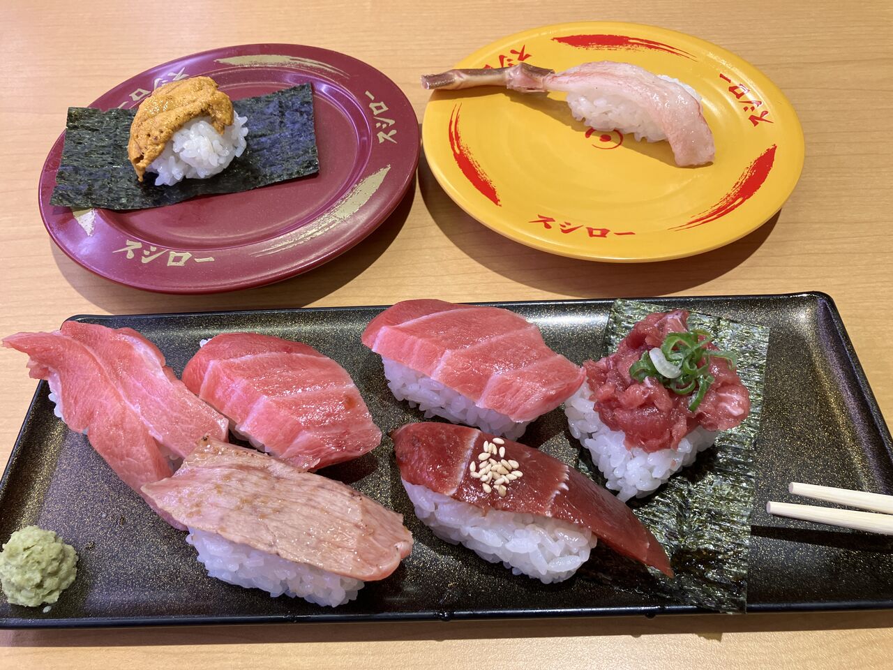 乗換駅の新宿3丁目で下車して「スシロー」で中食とした。