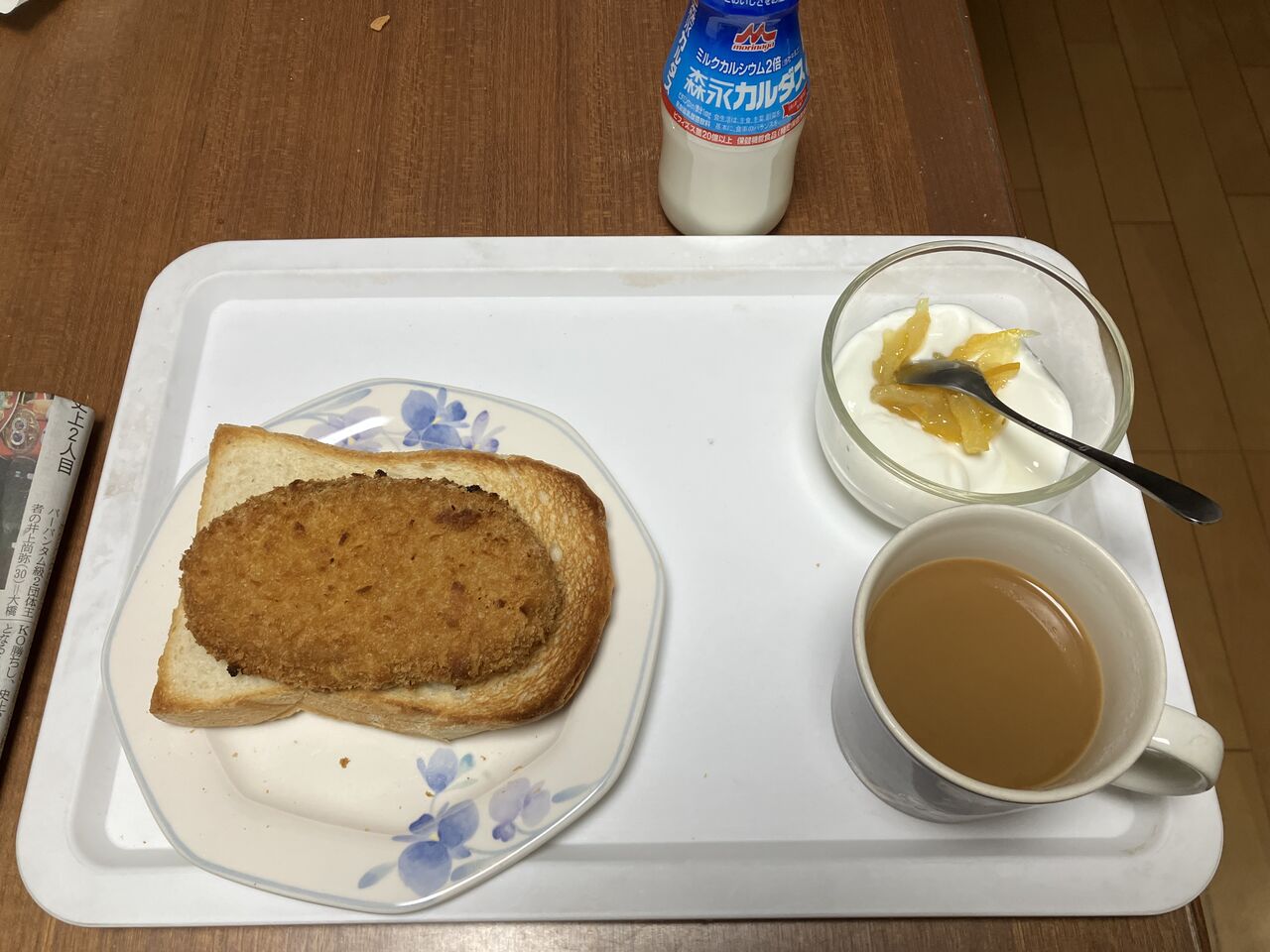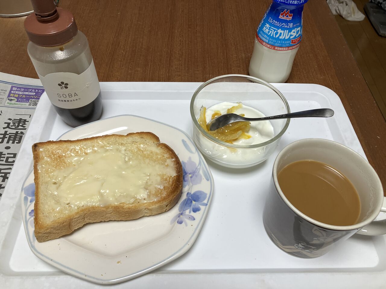 今朝の朝食、セブンの卵サラダ乗せトースト