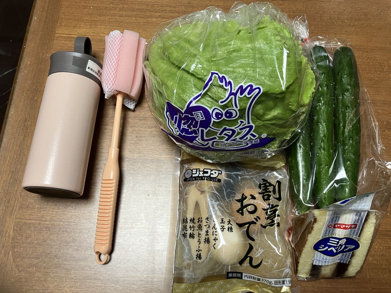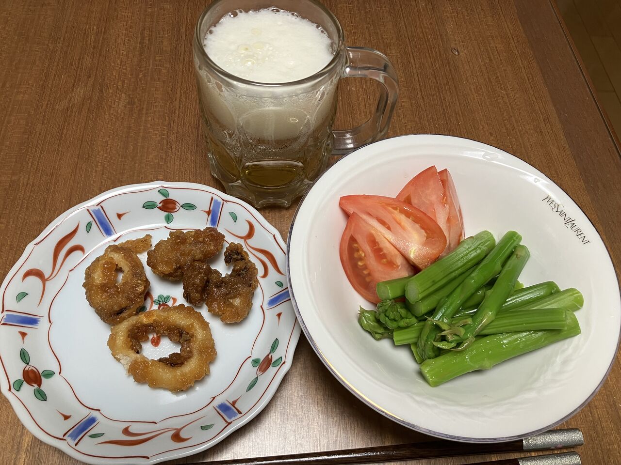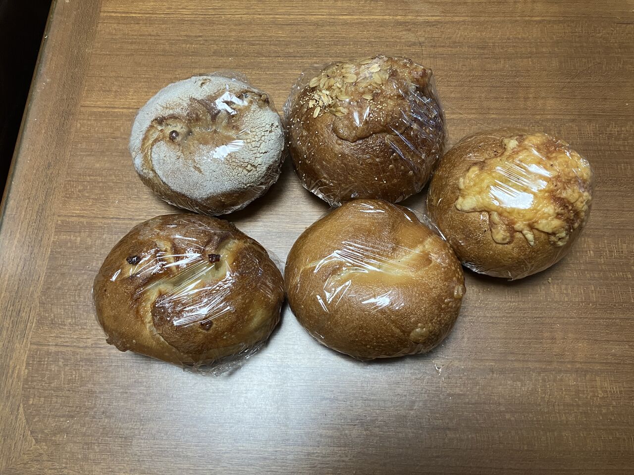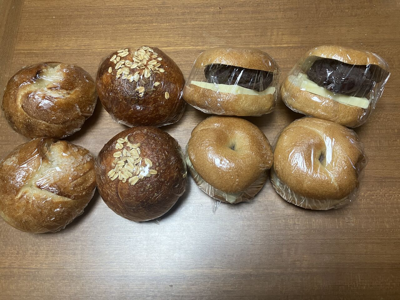 昼食、餡子バターベーグル、チンし過ぎでバターが溶けた、ポタージュスープ