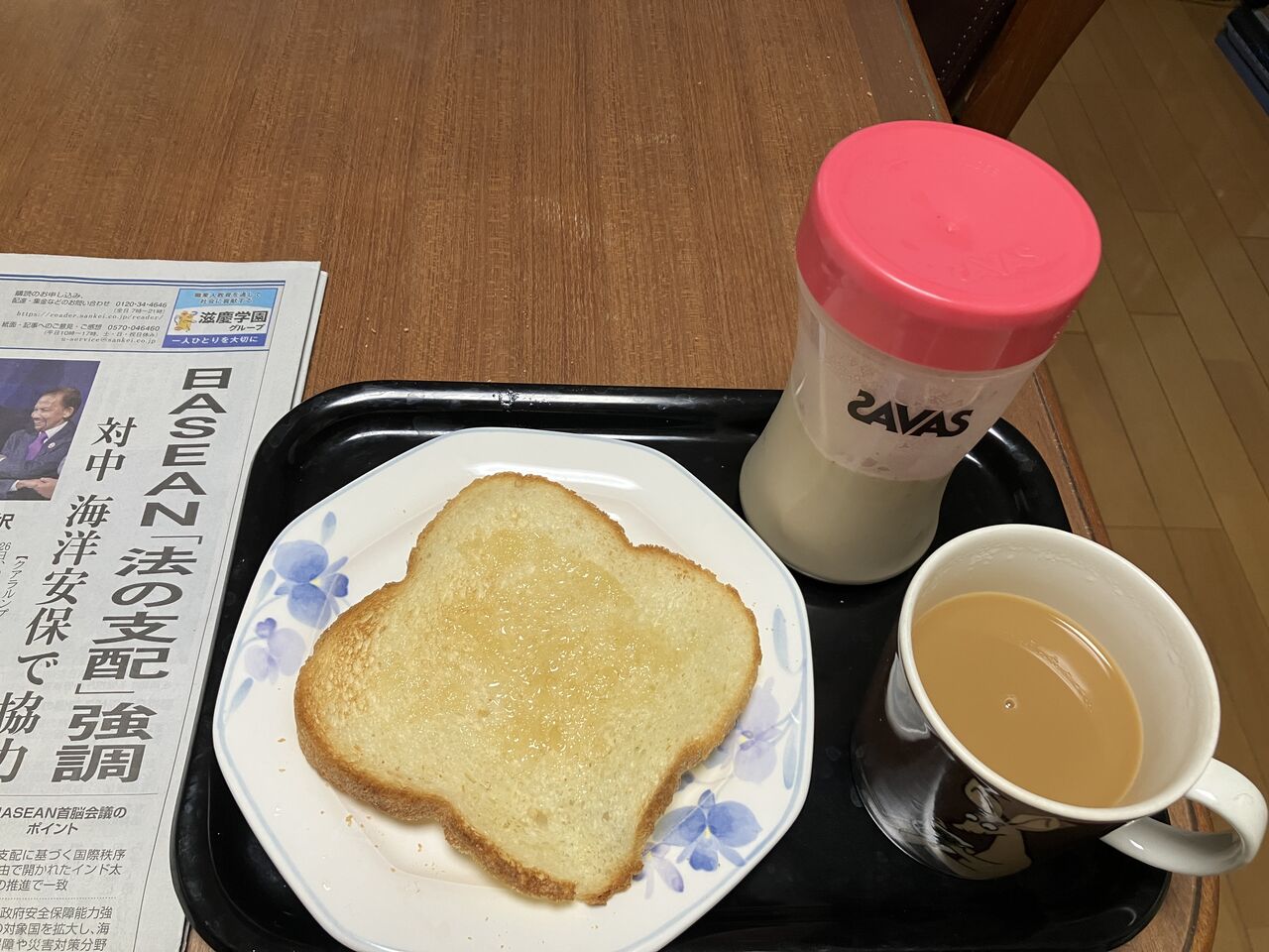 朝食、蜂蜜トースト、蜂蜜はとても身体に良いのね、毎日食べよう、