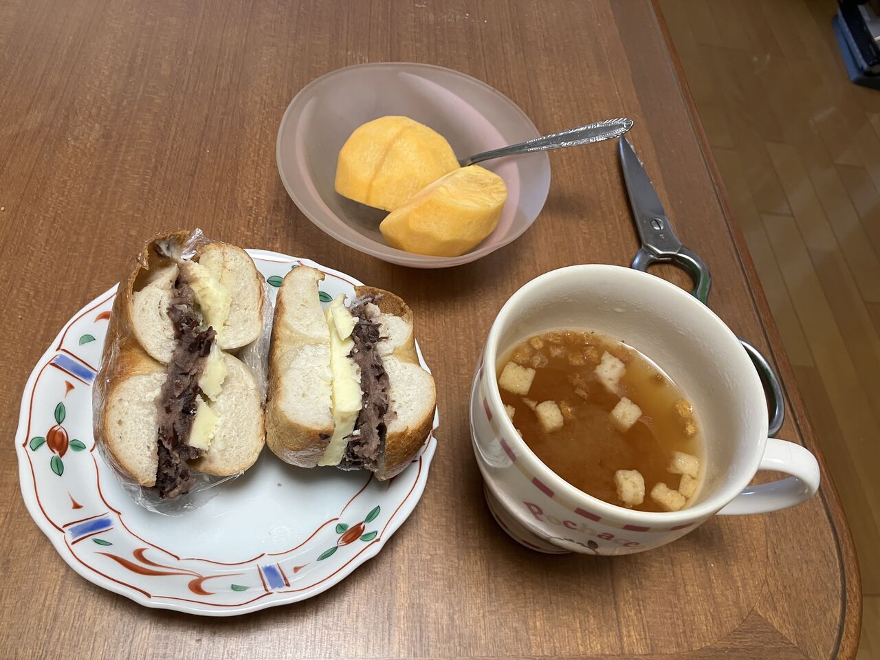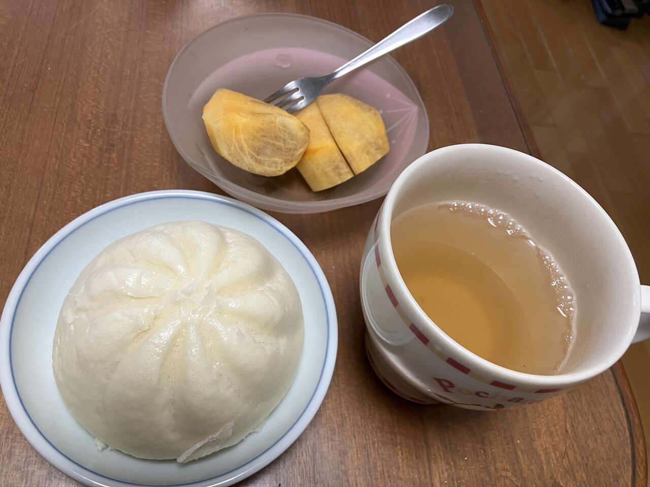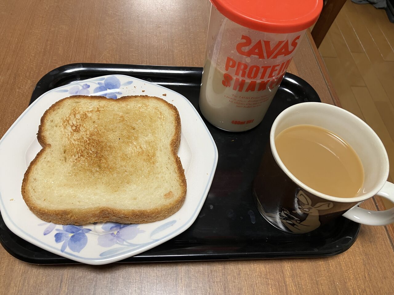 朝食、バタートースト、珈琲、プロテイン、牛乳