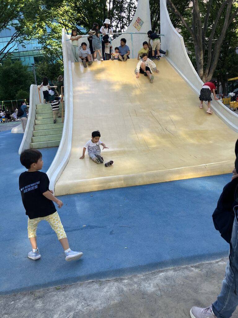子供の広場は親子連れでにぎわっています