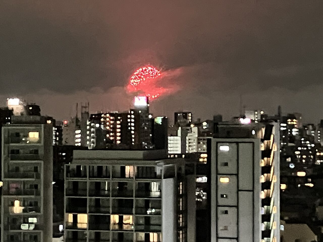 西の空でドドンと音がするのでみたら花火が上がっていた、