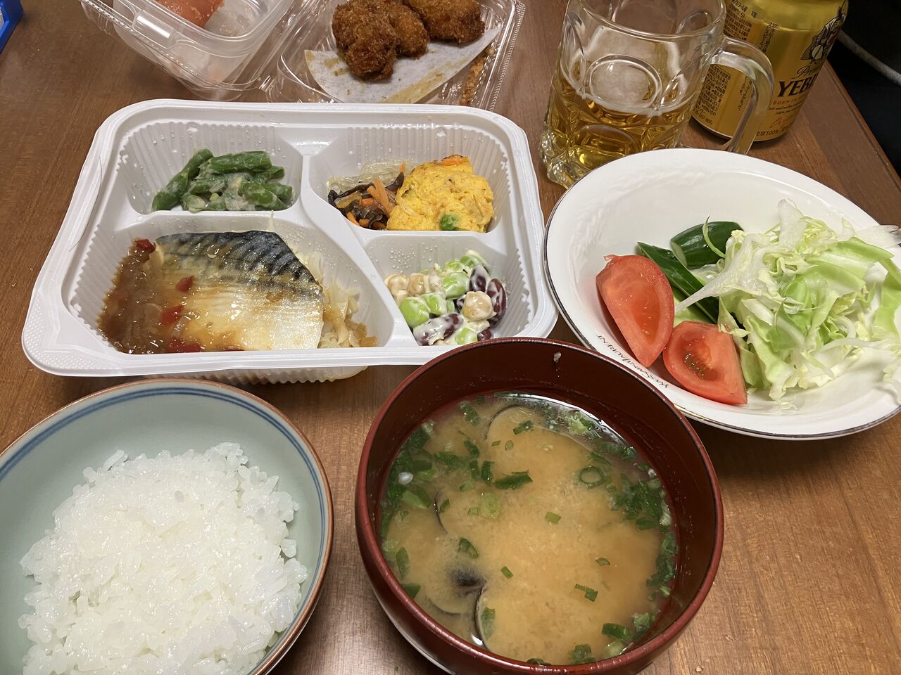 昼食、ベーグル、柿、カキフライ、野菜ジュース