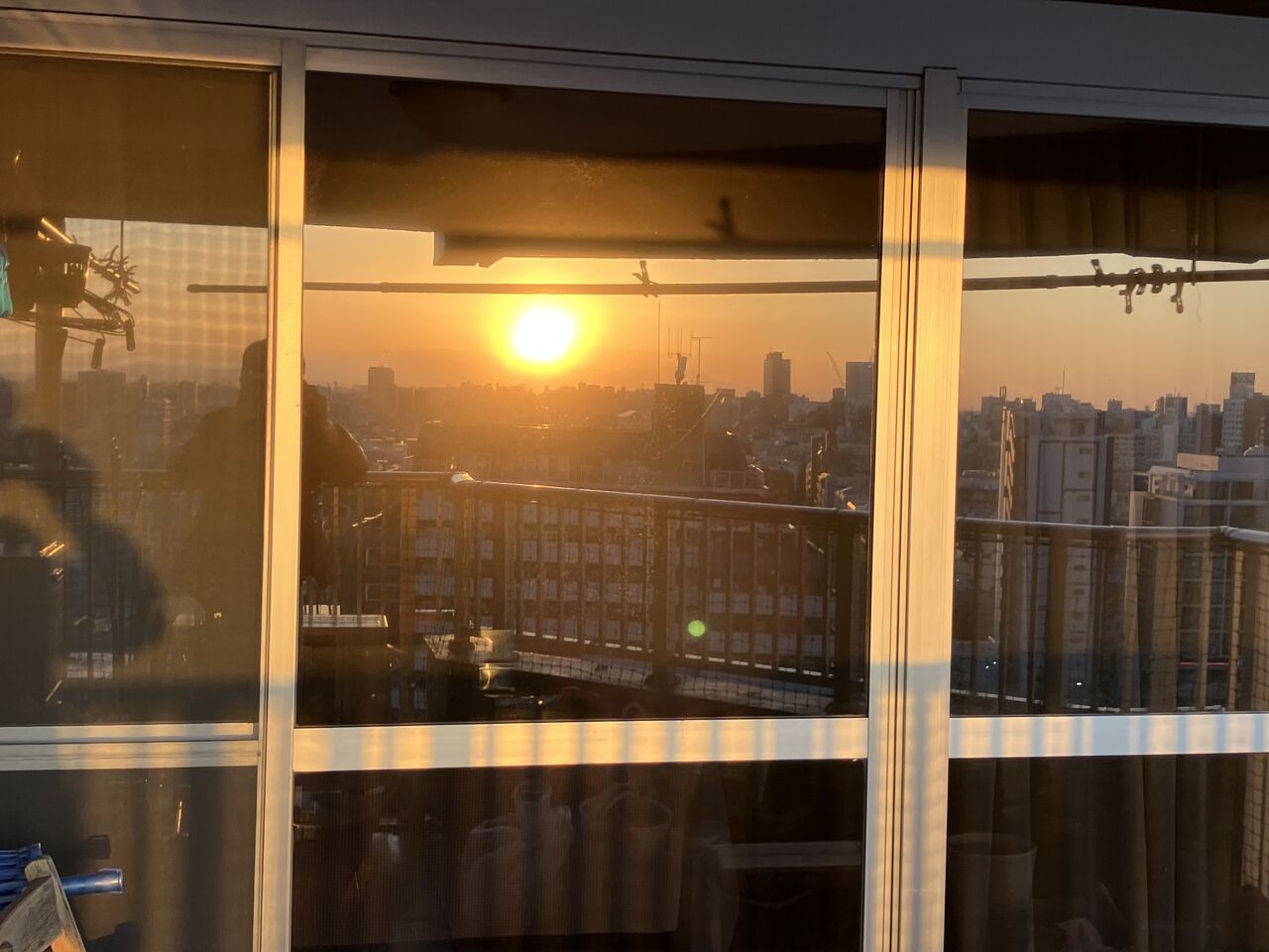サッシに映る太陽