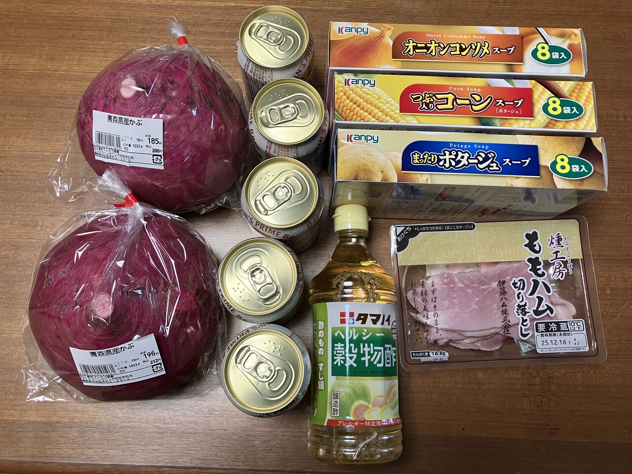 買った物、重かった、私は一口タイプのキリンビールを飲みますが、