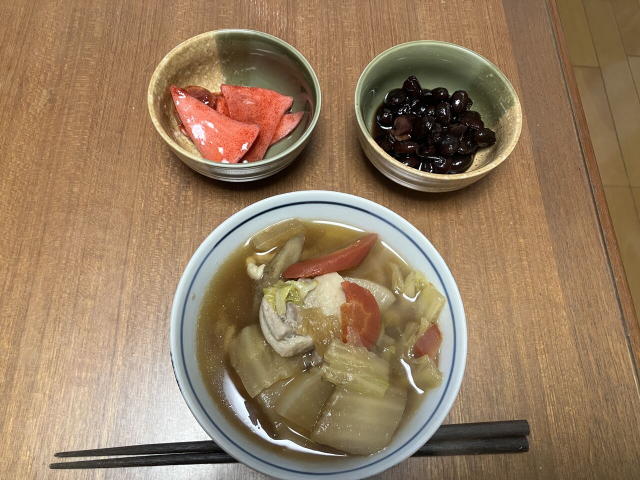 雑煮終わり、無駄なく食べたわ、でも鶏肉がまだあるのでもう一回やるかな。