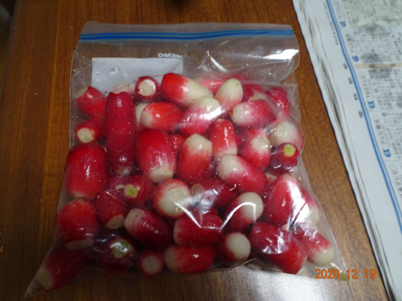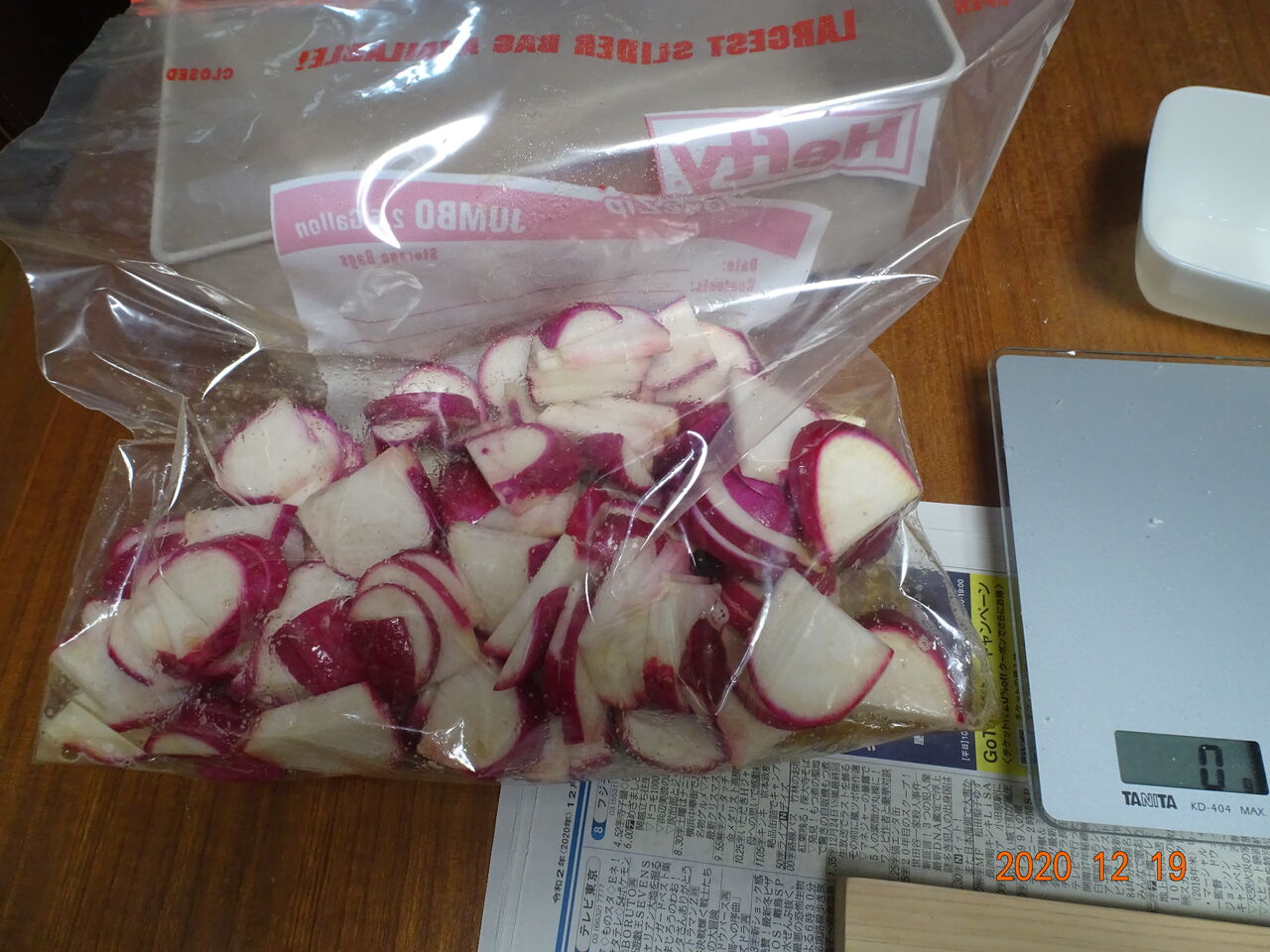 先日の蕪も漬け込んだ、一緒の重石で漬けます。