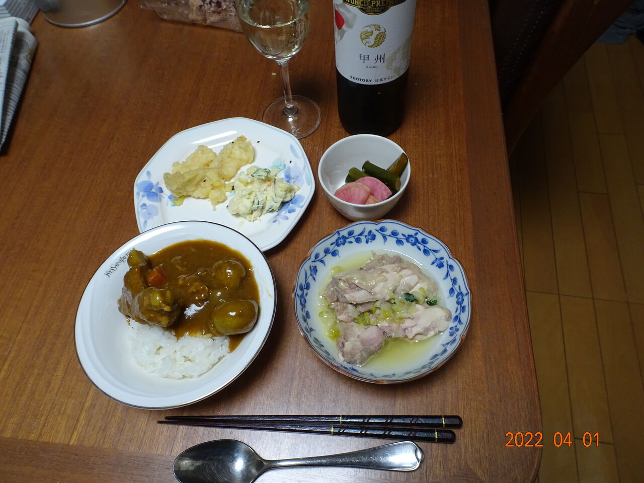 夕食、下真ん中Uさんが持って来たお煮しめ、これは口に合ったわ、