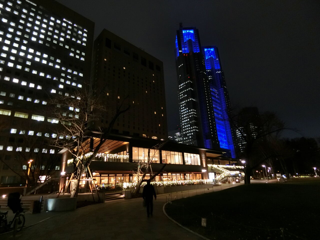 夕食後、娘が帰る時、一緒に出て都庁方面に散歩する。