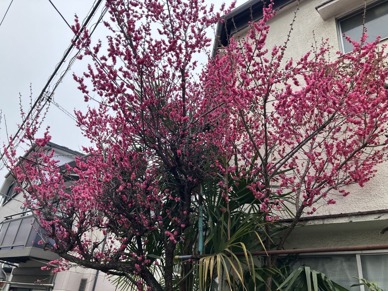 途中の住宅街にこれは桃の花かな、長いこと咲いている。